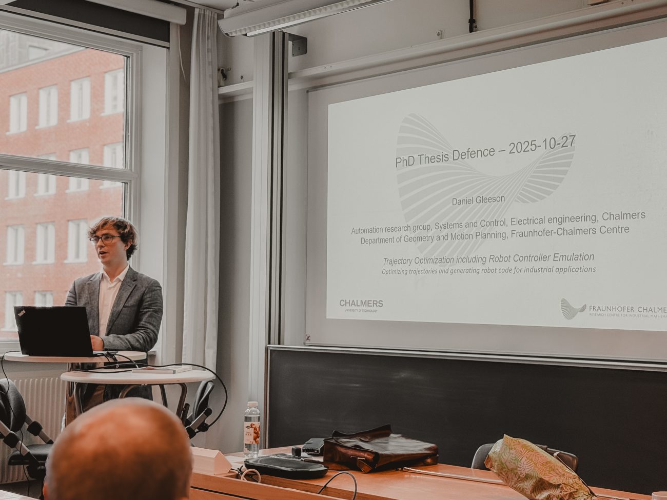 On Monday, 27 October 2025, our colleague Daniel Gleeson presented and defended his thesis for the degree of Doctor of Philosophy ”Trajectory Optimization including Robot Controller Emulation”